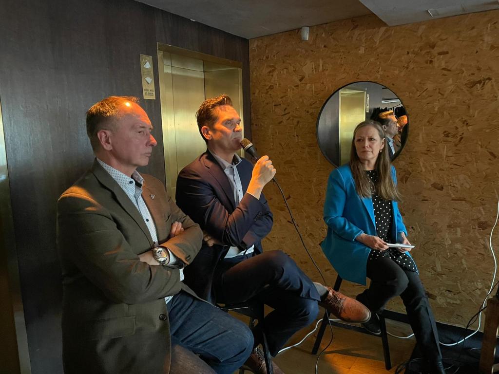 Paneelikeskustelu kriisinhallinnasta Mika Aaltolan ja Pekka Toverin kanssa.